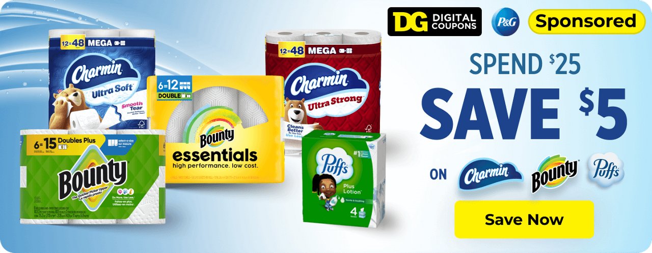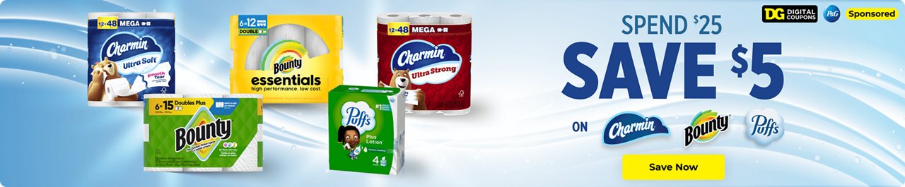 when you spend $25 on ANY Charmin, Bounty, Puffs