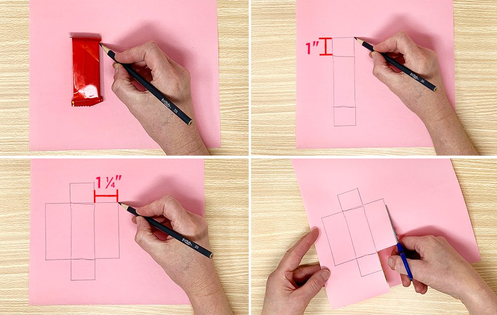 2. Measure and cut out a 3 1/2" wide x 4 5/8” length piece of yellow construction paper (length of your candy roll).