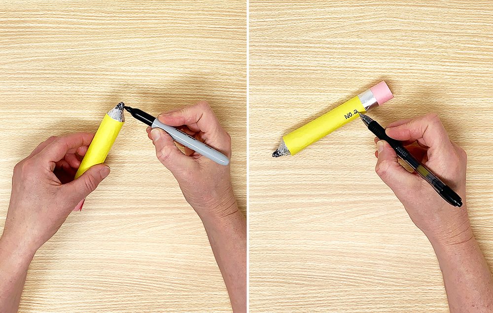 2. Write “No. 2” on the side of the pencil near the foil edge.