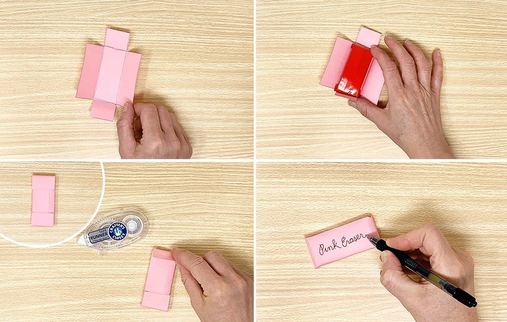 4. Flip candy eraser over and write “Pink Eraser” on the front. Tip: use cursive letters to give it some extra flare.