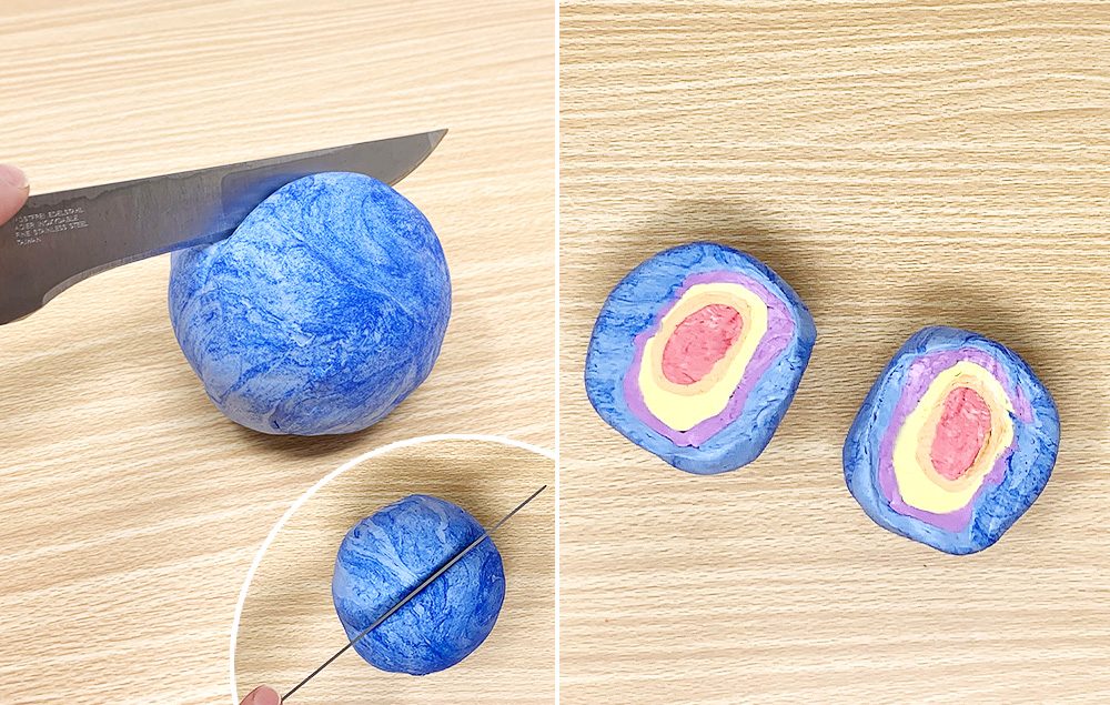 Have an adult help cut Earth clay ball in half.